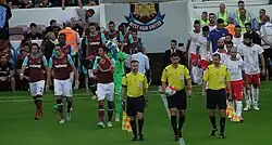 The players of West Ham and Manchester United entering the field for their FA Cup replay