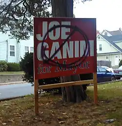 Joe Ganim had been mayor of Bridgeport from 1991 until 2003, when he was convicted of a number of corruption-related charges and sentenced to nine years in prison.[1] Both Finch[2] and Foster [3] heavily criticized him for his past behavior and alleged lack of repentance. Even so, Ganim made repentance a major theme of his candidacy, and he used his law enforcement endorsements to reassure voters that he had reformed.[4] Ganim also conducted a voter registration drive, targeting former felons whose paroles had ended.[5] Ganim was compared to Washington, D.C. mayor Marion Barry and Providence mayor Buddy Cianci throughout the campaign because they had also regained political office after criminal convictions.[6][7][8]