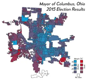 The 2015 Columbus mayoral election took place on November 3, 2015, to elect the Mayor of Columbus, Ohio . The election was officially nonpartisan, with the top two candidates from the May 5 primary advancing to the general election, regardless of party.[ 1]