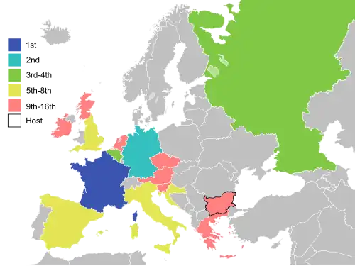 Map of the 2015 UEFA European Under-17 Championship finalist teams and their performances.