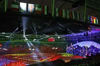 After that, the delegations representing 207 teams then marched into the stadium during the Parade of Nations traditionally led by Greece, the home of the first Olympics. The crowd gave large applause for other Latin American teams as well as notably Spain, the US, Canada, Italy, Portugal, and Russia. However, the biggest applause (aside from the host nation) came when the team of Refugee Athletes marched into the stadium just ahead of the Brazilian team. They received a standing ovation from the crowd.[20] Some teams were led into the stadium by model Lea T, the first famous transgender person to participate in an Olympic opening ceremony.[21]