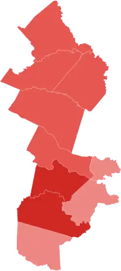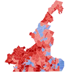 | Democratic Party | 11 | 1,859,426 | 49.17% | 4 | 36.36% | ||