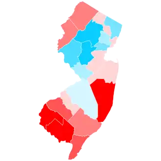 On the other hand, southern New Jersey, especially Cumberland County and Salem County, voted significantly more Republican than they had in 2012. For example, even though Cumberland County voted Democratic in both 2012 and 2016, Clinton won it by just 6%, whereas Obama won it by nearly 24% in 2012. Meanwhile, Trump flipped Salem County after Obama won it in 2012, and he also was the first Republican to win Gloucester County since 1988. Additionally, the four shore counties of Monmouth, Ocean, Atlantic, and Cape May all voted more Republican than they had in 2012, as Mitt Romney had won these four counties collectively by around 6% in 2012, but Trump won them by 17% in 2016.
