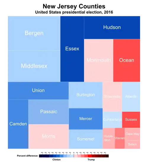 The 2016 United States presidential election in New Jersey was held on Tuesday, November 8, 2016, as part of the 2016 United States presidential election in which all 50 states plus the District of Columbia participated. New Jersey voters chose electors to represent them in the Electoral College via a popular vote, pitting the Republican nominee, businessman Donald Trump, and running mate Indiana Governor Mike Pence against Democratic nominee, former Secretary of State Hillary Clinton, and her running mate Virginia Senator Tim Kaine. New Jersey has 14 electoral votes in the Electoral College.[1]