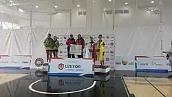 Medal ceremony for under-19 female doubles badminton medal ceremony