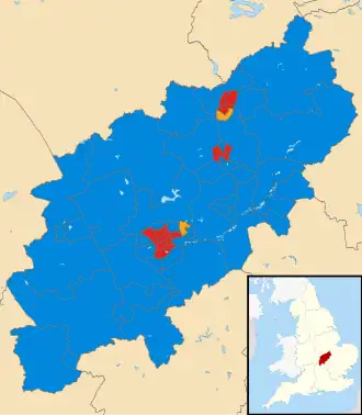![]() Map showing the results of the 2017 Northamptonshire County Council elections. | |||||||||||||||||||||||||||||||||