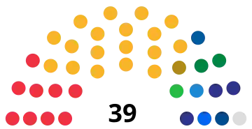 In the previous election, held on 9 September 2013, the Norwegian Sámi Association, with former President of the Sámi Parliament Aili Keskitalo as their Presidential candidate, won a plurality, with 11 of the 39 seats, including 2 on a joint list with the Sami People's Party. The Norwegian Sámi Association formed a minority administration on the Governing Council supported by the Labour Party, Árja and Åarjel-Saemiej Gielh. Keskitalo took office as President on 16 October after being elected by the Parliament. The Labour Party, which had governed from 2007, returned to the opposition.[1]
