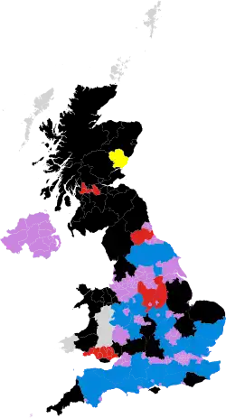 There were also 687 independent councillors and 4 Mebyon Kernow councillors. The remaining 217 seats were held by residents' associations and minor parties.[19] A by-election for the parliamentary constituency of Manchester Gorton (caused by the death of Sir Gerald Kaufman, the sitting MP) was due to be held on the same day as the local election, but the by-election was cancelled after the general election was called for the following month.[17]