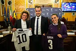 Juventus player Girelli and Fiorentina's Guagni at the final presentation conference