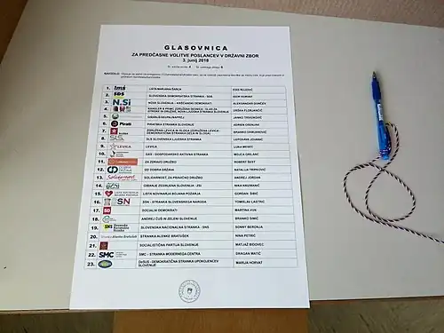 - ^ "Seznam list kanidatov - DZ 2018 | Državna volilna komisija". Državna volilna komisija. Archived from the original on 27 April 2018. Retrieved 26 April 2018.