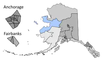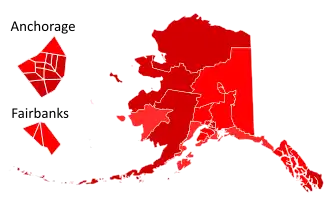 - Yukon–Koyukuk Census Area (largest town: Fort Yukon)