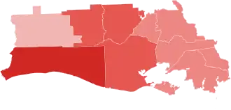 Parish results Higgins: 40–50% 50–60% 60–70% 70–80% |