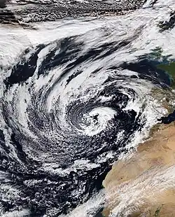 Storm Clement was named by AEMET on 27 November. It was located near the Azores Islands when it was named. By 28 November, Clement had moved slightly farther south and was affecting the Canary and Madeira Islands.[39] The storm stalled, keeping the worst conditions away from mainland Europe. Portugal and some parts of Western Spain did see Clement's outer bands.[40] The NHC was also monitoring the system for tropical or subtropical development. After stalling for about 4 days, the system dissipated on 2 December.[41][42]