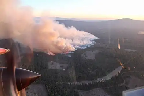 The Loyalton Fire was a wildfire burning in Lassen, Plumas, and Sierra counties, caused by lightning strikes in August 2020. During the fire, the National Weather Service issued the first ever fire whirl warning in US history.[5][6]