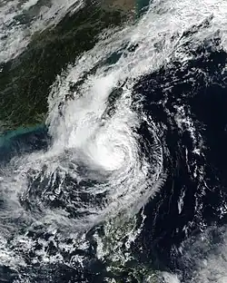 In advance of Hagupit, Chinese officials ordered the evacuation of areas vulnerable to flooding.[63] Hagupit caused torrential rainfall over portions of China peaking at 13.11 inches (333 mm) in the Jingshan district of Wenzhou.[64] 15 people were reported dead across South Korea, 6 of them following a landslide in South Chungcheong Province, 11 people were reported missing, and 7 people were injured.[65][66]