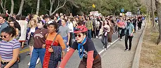 On February 10, tensions escalated when graduate students initiated demonstrations which sought to block traffic flow in and out of campus. Tony Boardman, a co-president of the UCSC Graduate Student Association who was participating in the strike, estimated that about 350 of graduate student workers took part with hundreds of undergraduate student protesters.[5] Several hundred undergraduates as well as many faculty members marched in solidarity and picketed alongside them, shutting down both entrances to UCSC for hours on Friday, February 21, with solidarity protests at many of the other UC campuses.[6]