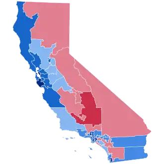 This is the first general election since 1994 in which a Republican defeated an incumbent House Democrat in California. This year, despite the statewide dominance by Democratic presidential nominee Joe Biden , a record-breaking number of Republicans defeated Democratic House incumbents: Young Kim defeated Gil Cisneros in District 39 , Michelle Park Steel defeated Harley Rouda in District 48 , and David Valadao defeated TJ Cox in District 21 to reclaim his old seat. This happened even as Democrats won the statewide combined House vote by a wider margin than Biden.[ 1] Mike Garcia also defeated Christy Smith in District 25 to retain the seat he flipped in the May 12 special election to fill the seat vacated by Katie Hill .[ 2]