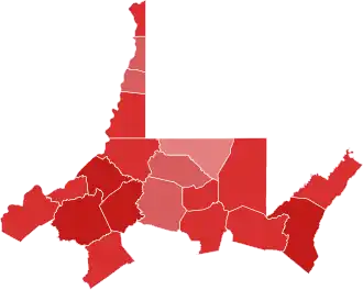 County results Mooney: 50–60% 60–70% 70–80% Swing More Democratic 5-10% <5% More Republican 25-30% 20-25% 15-20% 10-15% 5-10% <5% | |||||||||||||||||