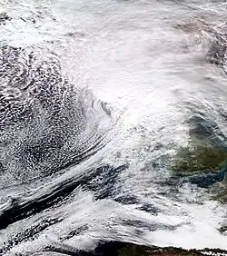 The naming strategy for the Northern group (Iceland, Denmark, Norway, Finland and Sweden)[9] is slightly different than the other groups, as names are not announced beforehand to prevent the names being used before a storm formally qualifies.[10] Storms or former cyclones named by the other group of agencies were used reciprocally, unless the names used in other groups were not pronounceable in the local language. However, if a Northern group storm was used to overwrite another storm like Eunice, it was not added to the overall total of storms within the 2021–22 European windstorm season, as they were the same storms with different names. This was the case for storm Eunice, which was named Nora in Denmark (and so the latter name is not listed below).[11]