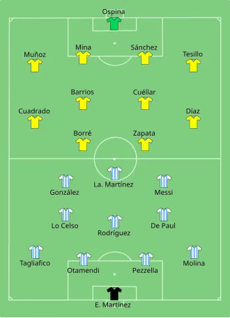- ^ CONMEBOL [@CopaAmerica] (3 July 2021). "@D_Ospina1 fue el Mejor Jugador del Partido" (Tweet) (in Spanish). Retrieved 3 July 2021 – via Twitter.