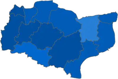 The 39 police force areas within England and Wales where elections were held. This is a reduction of one since 2016 with West Yorkshire Police being handed to the Mayor of West Yorkshire in 2021. Colours denote the winning party, as shown in the main table of results. | |||||||||||||||||||||||||||||||||||||||||||||||||