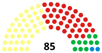 Note 1: A vacancy created less than six months before the election was not filled so there were only 84 councillors prior to the poll.