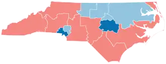 As a result of population growth over the preceding decade, the state's Congressional delegation increased from thirteen seats to fourteen in 2022. Republican-drawn districts adopted by the state legislature was struck down by the North Carolina Supreme Court as unconstitutional partisan gerrymander, and court-drawn maps issued in their place.[2] Democrats flipped the redrawn 13th district from Republican control, and won the newly created 14th district, yielding an even 7–7 House delegation.