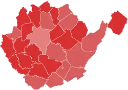 Mooney: 50–60% 60–70% 70–80% 80–90% >90% Wendell: 50–60% 60–70% 70–80% 80–90% >90% Tie: 50% No data | |||||||||||||||||