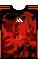 Third alt Red and black body, black sleeves, black shorts, and black socks with 3 stripes white.