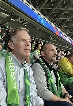 The United States Ambassador to China Nicholas Burns in the Guoan stands in September