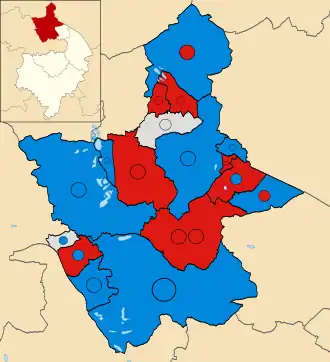 1. ^ Including one vacant seat previously held by Labour councillor Jack Deakin prior to his resignation in December 2022.[1]