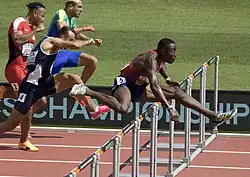 ![]() Grant Holloway competing in the heats. | ||||||||||