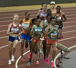 ![]() Gudaf Tsegay and Sifan Hassan competing. Hassan stumbled just a few metres before the finish line. | ||||||||||