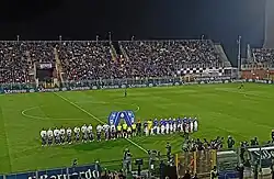 Como 1907 and Lazio players on the pitch before the game on 31 October 2024