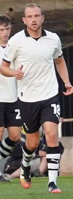Ben Garrity was appointed as the new captain and he scored both goals in a 2–0 victory at Salford City on the opening day of the season.[16][17] Recruitment continued as Diamond Edwards was signed from Southampton's Academy on a 12-month contract.[18] The first home fixture of the season was a 0–0 draw with Tranmere Rovers in front of a crowd of 8,102.[19] Vale fell to a 4–0 defeat at Barrow, with all four goals coming in the second half.[20] Summariser Phil Sproson said that he was shocked by the late collapse and that the game had looked balanced until the second goal was scored on 79 minutes.[21] On transfer deadline day, Vale signed 20-year-old Jamaica international Brandon Cover on loan from Leicester City, attacking midfielder Rico Richards on loan from Aston Villa, and forward Antwoine Hackford on loan from Sheffield United respectively.[22][23][24] On the morning following transfer deadline day, it was announced that Funso Ojo had left the club on a season-long loan to Shrewsbury Town, whilst Baylee Dipepa was sold to Southampton for an undisclosed fee.[25][26] The month concluded with a 3–2 home defeat by Doncaster Rovers, with Luke Molyneux scoring a brace and assisting 38-year-old Billy Sharp for Doncaster's other goal.[27]