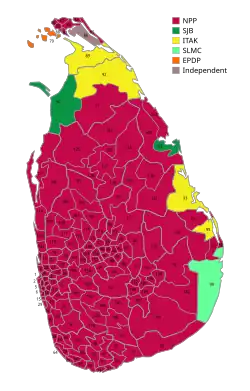 33. ^ "2024 General Election: Number of MPs elected from each district revealed". Ada Derana. 25 September 2024. Archived from the original on 26 September 2024. Retrieved 26 September 2024.