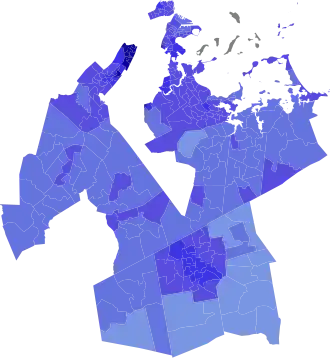 Precinct results McGovern: 50–60% 60–70% 70–80% 80–90% >90% Shea: 50–60% |
