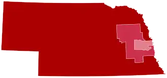 The 2nd district covers the Omaha metropolitan area, including all of Douglas County, home to the city of Omaha, Saunders County, and suburban parts of northern Sarpy County, including La Vista and Papillon. The incumbent is Republican Don Bacon, who was re-elected with 51.3% of the vote in 2022.[1]