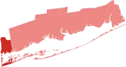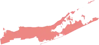 The 1st district is based on the eastern end and North Shore of Long Island, including the Hamptons, the North Fork, Riverhead, Port Jefferson, Smithtown, and Huntington, all in Suffolk County.[8] The incumbent was Republican Nick LaLota, who was elected with 55.51% of the vote in 2022.[9] George Santos, who was expelled from Congress in December 2023, announced a Republican primary challenge to LaLota in this seat, announcing his run as a Republican during Joe Biden's 2024 State of the Union Address.[10] On March 22, 2024, Santos announced that he was withdrawing from the Republican primary and would instead run as an Independent candidate.[11] On April 23, 2024, Santos withdrew from the race entirely.[12]