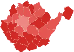 The results were cleanly divided across the district: Reed carried 16 counties in the northwestern part of the district, while Umberger won 11 in its southeastern part. Reed recorded his best result in Logan County, which gave more than four fifths of its vote to Donald Trump in 2020.[17] Conversely, Umberger achieved his strongest performance in Greenbrier County.