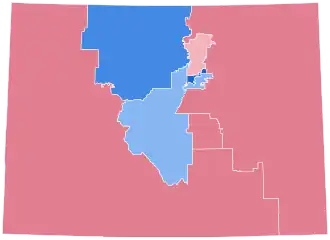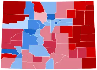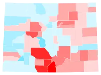 Notably, despite following the nationwide trend toward the Republicans, Colorado did not see as large of a shift rightward compared to other blue states,[2] but Republicans did flip one seat in Colorado's congressional delegation. Harris won by 11%, only 2.5% down from Biden in 2020, significantly better than Hillary Clinton's margin of 4.9% in 2016, and exceeding Barack Obama's margins in both 2008 and 2012.