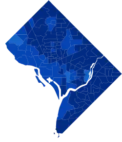 Harris won the district overwhelmingly with 90.28% of the vote. The district was both Harris' strongest electoral jurisdiction and county-equivalent jurisdiction, voting more Democratic than all state counties in the United States.[4] Trump won 6.47% of the vote, his best performance in terms of percentage of votes cast in all three of his runs.