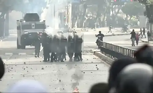 Venezuelan citizens who considered the results to be fraudulent took to the streets to protest.[90][91][92] During the month of July, the Venezuelan Observatory of Social Conflict (OVCS: Observatorio Venezolano de Conflictividad Social) documented 1,311 protests throughout Venezuela; 70% were on 29 or 30 July.[93] OVCS said most of the protests occurred in poor areas, and involved "harassment, arbitrary arrests, threats and political retaliation against leaders and sympathizers of opposition political parties".[93]