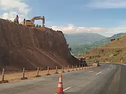 More than 2,145 homes were reportedly affected,[17] of which 201 were severely damaged and 25 were in risk of collapse. Additionally, nine health centers, 13 public buildings, 62 schools, 31 roads, a highway and a bridge were impacted.[18][19][20] At least 1,953 people were affected, of which 323 were left homeless.[19] In Amatitlán and Antigua Guatemala, several homes were damaged or destroyed and a church at Santa María de Jesús was severely damaged.[21][2] Santa María de Jesús was isolated following a landslide on the RD-SAC-01 highway.[22] Water and electricity outages also occurred.[23] In Palín, more than 300 homes, the old municipal building, and a church were damaged and a landslide occurred.[24][20] In San Vicente Pacaya, more than 300 homes were damaged[25] and the main access road to the municipality was blocked by a landslide.[26] In the capital Guatemala City, one house collapsed and a building was severely damaged.[27] A health center was damaged in Joyabaj, Quiche.[20] Some damage was also reported from the departments of Baja Verapaz and Chimaltenango.[28] Power, telephone, and internet services were disrupted in towns near the epicenter,[29] with electric services fully restored in Santa María de Jesús two days after the quake.[20] The National Hospital of Amatitlán suspended operations due to earthquake damage, while its patients were evacuated to Villa Nueva.[30] A building within the complex was subsequently recommended for demolition.[31]