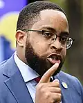 Early in the campaign, incumbent mayor Eric Adams was criticized for his handling of policing, the city budget, and the influx of migrants. By September 2024, Comptroller Brad Lander, former Comptroller Scott Stringer, state Senator Zellnor Myrie, and state Senator Jessica Ramos had announced campaigns for mayor.[36][37] Adams increasingly faced calls to resign after being indicted on September 25, which resulted in multiple city officials resigning.[38] Following the scandal, multiple more candidates announced their campaigns to challenge Adams, including investor Whitney Tilson,[39] former state Assemblymember Michael Blake,[40] and state Assemblymember Zohran Mamdani.[41]
