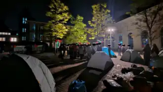 The 2025 Utrecht University student protests are a series of demonstrations and encampments initiated by students and staff at Utrecht University in the Netherlands. Following several smaller protests earlier that year, after May 2025 protesters established an encampment and other occupations on university grounds to demand that the university sever all academic and financial ties with Israeli institutions and companies in response to the ongoing Gaza war and the genocide of Palestinians.[1][2]