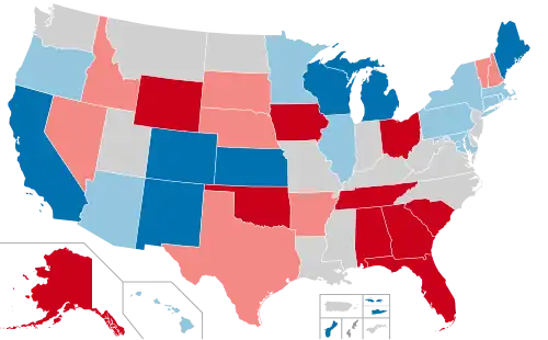 36 states and three territories will be holding regularly scheduled gubernatorial elections. The governors of 15 states and two territories will be term-limited.