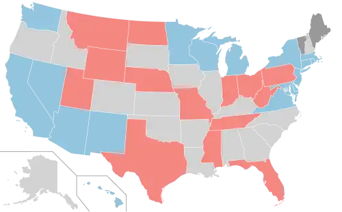 ![]() Map of the incumbents: Democratic incumbent Republican incumbent Independent incumbent No election | |||