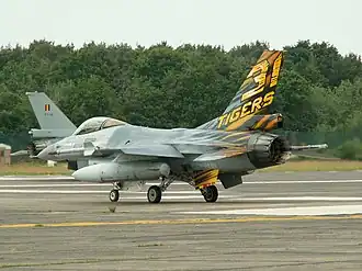The 31st 'Tiger' Squadron is a strike-fighter squadron in the Air Component of the Belgian Armed Forces. It is part of the 10th Tactical Wing and operates F-16 Fighting Falcons. They use a tiger as their squadron emblem.