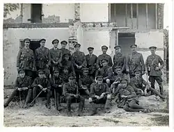 At the Battle of Neuve Chapelle on 10 March, the Gharwal Bde was the assaulting formation of the Indian Corps, attacking Neuve Chapelle village from the 'Port Arthur' salient in the south west with 1/3rd Londons under Lt-Col A.A. Howell as the reserve battalion. The leading battalions went through the southern end of the village and took the brigade objective (the German second line trench), leaving just a short section of the German front line in front of Port Arthur uncaptured. Two companies of 1/3rd Londons were sent up to help capture this outpost. Together with four platoons of 1/39th Garhwal Rifles, they made a frontal attack at 17.00. It was 'carried out with great gallantry' and at first the Londoners suffered serious casualties, but as they neared the trench the garrison of 80 men surrendered.[42][43][44]